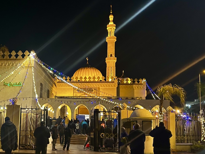 受美伊戰爭影響,全球能源陷入短缺危機。埃及總理已於3月18日宣布,自3月28日開始,全國所有餐廳、商店提早於晚間9點打烊,並減少戶外照明。圖為開羅一間清真寺在夜晚照明中熠熠生輝。圖攝於3月22日。(中央社記者施婉清開羅攝)