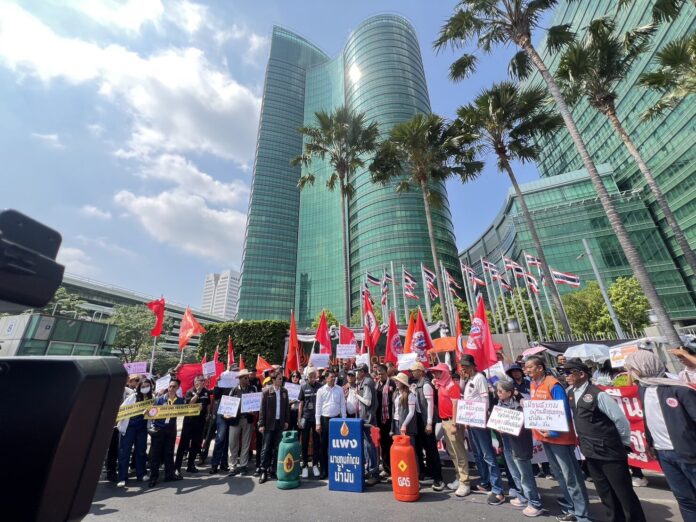 (台泰時報4月2日電)泰國多個勞工團體與民眾2日上午於能源部前集會,抗議政府調漲油價政策,指出已對民生造成連鎖影響,並要求當局儘速提出具體措施,解決油價高漲、電費上升及生活成本增加等問題。集會於當日上午9時30分在曼谷威帕哇迪蘭實路能源部前展開。