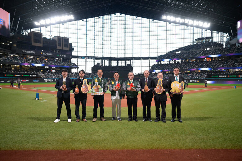 (中央社台北4日電)台灣鳳梨成功打進日本北海道市場。農業部3日晚間攜手日本職棒北海道日本火腿鬥士隊,於主場ES CON FIELD HOKKAIDO舉辦「台灣鳳梨日」,在現場近3萬名球迷見證下,不僅透過球場宣傳與轉播曝光,更首度將台灣金鑽鳳梨帶進球場販售。