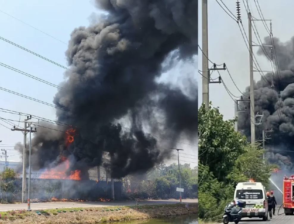 (台泰時報4月4日電)泰國巴吞他尼府空鑾縣一處舊零件回收場4日中午發生火警,火勢迅速蔓延並產生大量黑煙直衝天際,因天氣炎熱助長燃燒,現場一度陷入混亂,消防人員持續灌救中。
