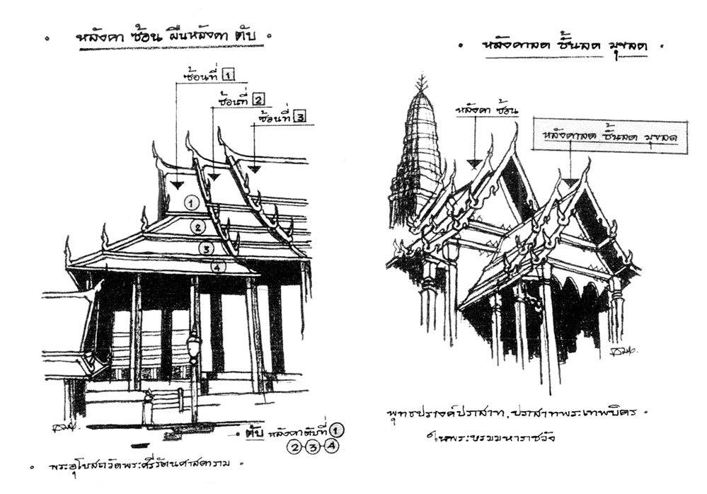 拱形亭,Mondop(泰語:มณฑป):源於梵文曼達坡,是個四面拱形、開放的亭子。金字塔似的尖頂,可以用於供奉經文或聖物。