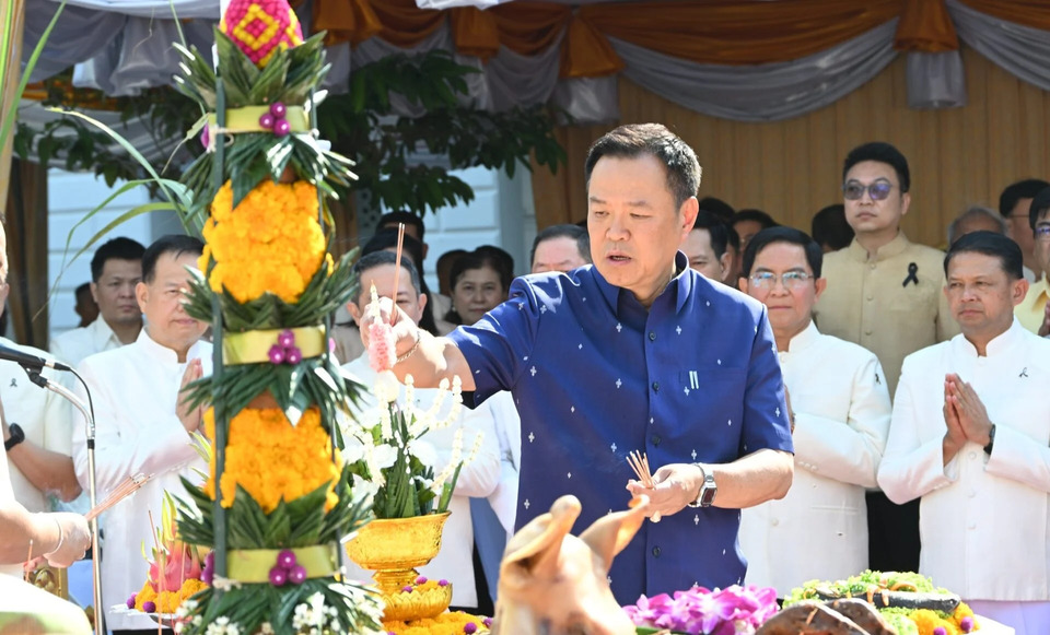 (台泰時報4月6日電)泰國副總理兼內政部長阿努廷(Anutin Charnvirakul)於6日在內政部詩琳通公園主持「佛陀大九龍守護佛像」開光與祭祀儀式,期盼透過宗教象徵提升內政部公務人員士氣,並延續「解民之苦、增民之福」的施政理念。