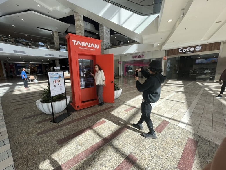 (中央社舊金山9日電)交通部觀光署推動國際旅客在台灣轉機,近日在西雅圖都會區購物中心搭建「時光門」,紅色門板印上白色字樣,在國慶期間顯得格外應景。每扇門拉開都能透過沉浸式影像感受北台灣經典場景,吸引民眾駐足留影。