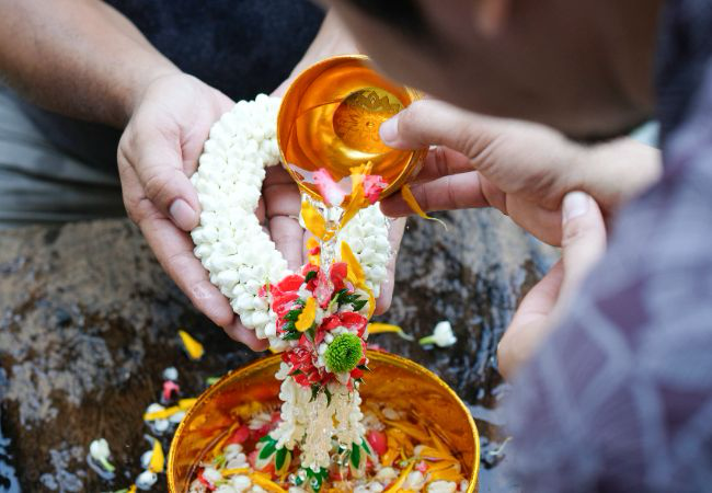 在較為傳統的實踐裡,人們會將水輕輕倒在長輩的手上(Rod Nam Dam Hua),或灑於佛像之上。這個動作的關鍵不在於量,而在於其所指涉的關係與方向——水從晚輩流向長輩,象徵洗去過去一年的不順,同時也重新確認一種社會秩序。水在此不只是物理性的存在,而是一種具有文化與宗教意涵的媒介。