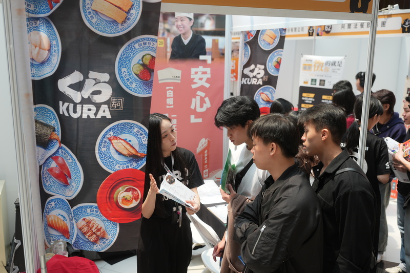 僑委會11日在台北車站大廳舉行「2026年僑生就業博覽會」,廠商派專人向僑、外生釋出徵人相關訊息。(中央社記者徐肇昌攝)