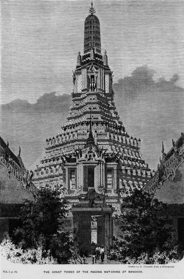 1858年的黎明寺佛塔,法國探險家亨利·穆奧在其遊記中盛讚黎明寺是曼谷最美的佛寺