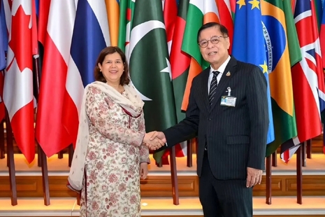 (台泰時報4月12日電) 泰國副總理兼外交部長希哈薩(Sihasak Phuangketkeow)於4月12日在曼谷會晤Rukhsana Afzal,就中東緊張局勢及泰國商船通行安全問題進行討論,特別關注經由荷莫茲海峽的航運情況。