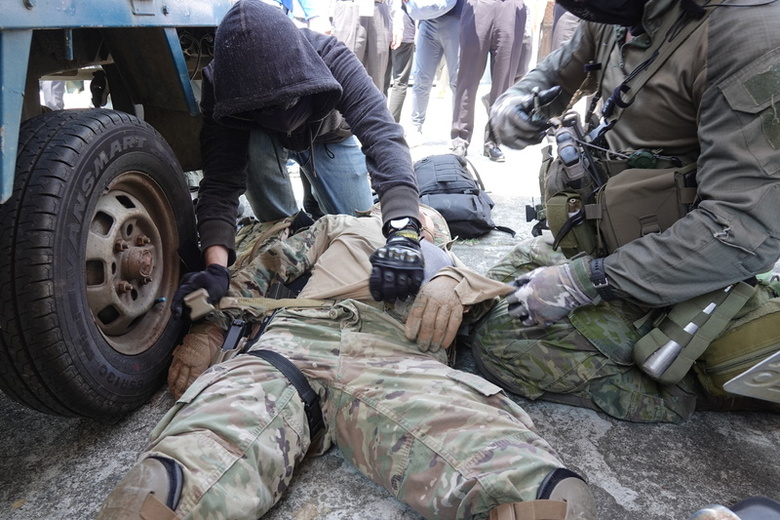 此次演訓擔任醫療組裁判的牙醫師賴佑安分享,今年演訓想定的武力威脅程度較高,不時會遭遇攻擊情境,使得參訓人員常處在高張力情況,醫療組參訓民眾多具備初級救護員(EMT-1)證照,但現場會因緊張或久未複訓導致操作時出現不熟悉,以及所學知識難以應付進階情境等情況。