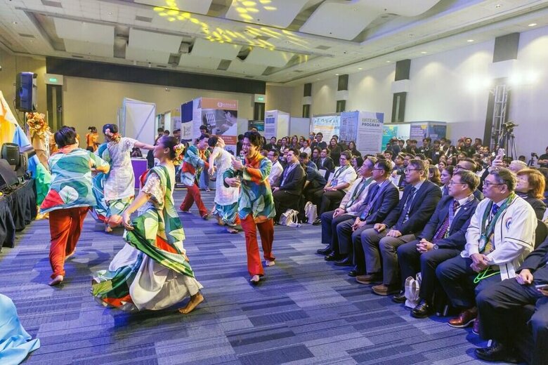 菲律賓海外教育展13日在馬尼拉舉行,國立布拉坎大學(Bulacan State University)安排精彩的傳統舞蹈表演,台菲雙方透過深度文化互動,為高教合作奠定堅實友誼基礎。(國立中興大學提供,中央社記者林行健馬尼拉傳真)