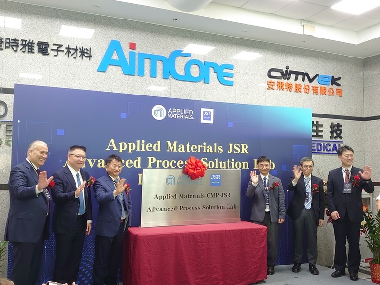 先進平坦製程解決方案聯合研究中心位於新竹縣湖口鄉,包括JSR電子材料事業部總經理木村徹、應用材料集團副總裁暨台灣區總裁余定陸及章勳明皆出席15日的落成啟用典禮。