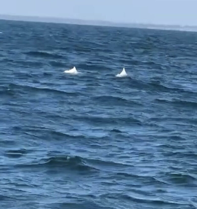 台南市政府農業局15日告訴中央社記者,中華白海豚悠遊台南海域,由漁民陳德維於3月中旬拍攝,地點在安平外海離岸1.5浬處,肉眼可見是一群中華白海豚,但影像僅拍到2隻。
