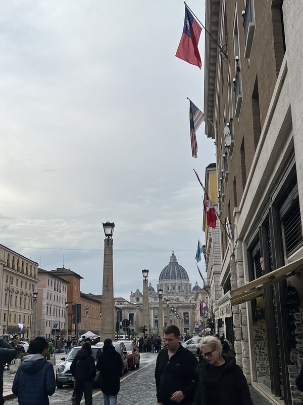 中國持續迫害國內天主教徒引起國際組織人權觀察關切,呼籲教宗良十四世重新審議梵中協議。圖為梵蒂岡聖伯多祿教堂與前方的協和大道。(中央社記者黃雅詩梵蒂岡攝)
