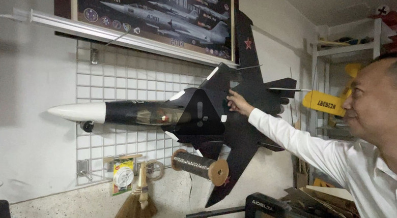 他說,SU-47造型太特殊,怎麼飛上天是門學問,幸經不斷試錯,現已能順利升空,國外遙控戰機玩家看到剛在國際航空展展示的戰機,竟已有人能製作出遙控版,邀他在航空雜誌上介紹製作過程。