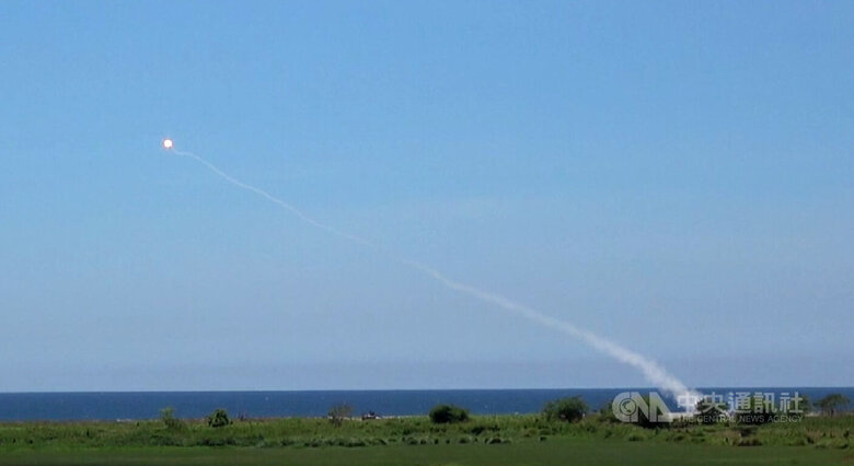 圖為菲律賓與美國2025年「肩並肩」聯合軍事演習,美軍陸戰隊的整合防空系統(MADIS)擊中空中目標。(中央社檔案照片)