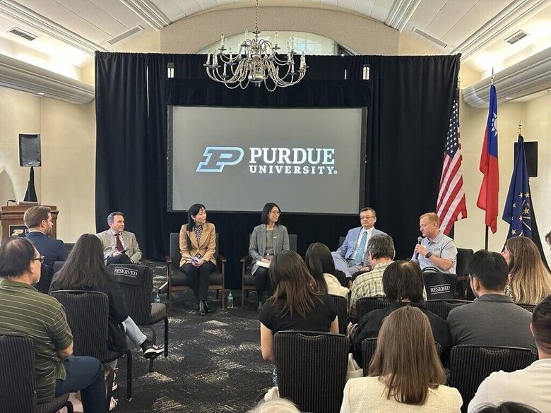 普度大學16日舉行放映暨座談會,普度大學研究執行副校長迪勞倫提斯(Dan Delaurentis)、普度研究基金會執行長薛德曼(Chad Pittman)、普度半導體領導協會主席Zhihong Chen與印州經發廳新任總裁李察遜(Josh Richardson)等出席。