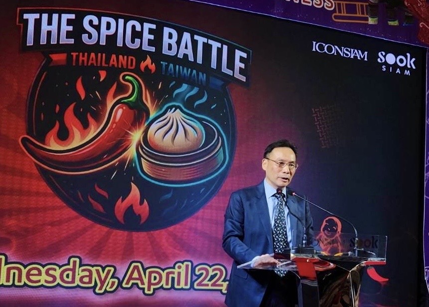 (台泰時報曼谷電)為深化台泰文化交流,駐泰國代表處攜手ICONSIAM購物中心及中華美食交流協會,於4月22日在曼谷SOOKSIAM舉辦「The Spice Battle-Taiwan vs Thailand」美食交流活動。活動邀集台灣與泰國頂尖主廚同台對決,在開放式場域中即席料理,吸引眾多民眾與餐飲界人士到場觀摩,現場氣氛熱絡。
