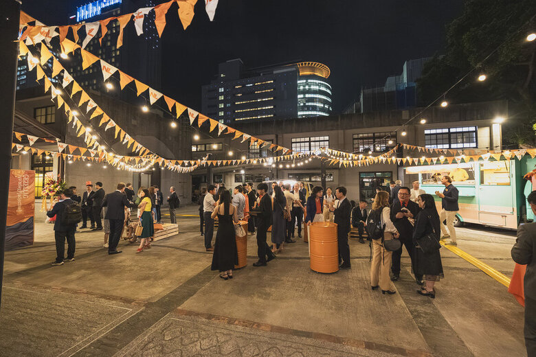 「2026荷蘭國王節」酒會22日在南港瓶蓋工廠半戶外空間舉行,今年以「gezellig」為主題,呈現輕鬆而開放的聚會氛圍。 (荷蘭在台辦事處提供,中央社記者楊堯茹傳真)