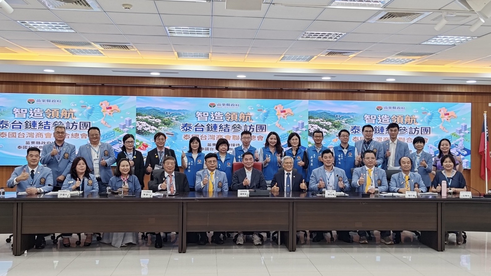 (台泰時報綜合報導)泰國台灣商會聯合總會於4月13日至15日組成「智造領航・泰台鏈結參訪團」,由總會長陳漢川率團返台,偕同總會長夫人許露丹、永遠名譽總會長劉樹添、副總會長吳順國、陳戴毅、孔祥蘭、李奇賢、黃鴻居、陳俊蓁、張博淵、張桂銘、副監事長盧朝勖、秘書長張正杰,以及理事周櫻桃、張欣怡、監事楊秀枝、顧問陳弘杰、總幹事劉妍伶、泰北台商會名譽會長張榮三等人一行,展開為期三天的產業與政策交流行程,串聯中央、地方政府與學研機構,推動台泰產業合作與投資鏈結。