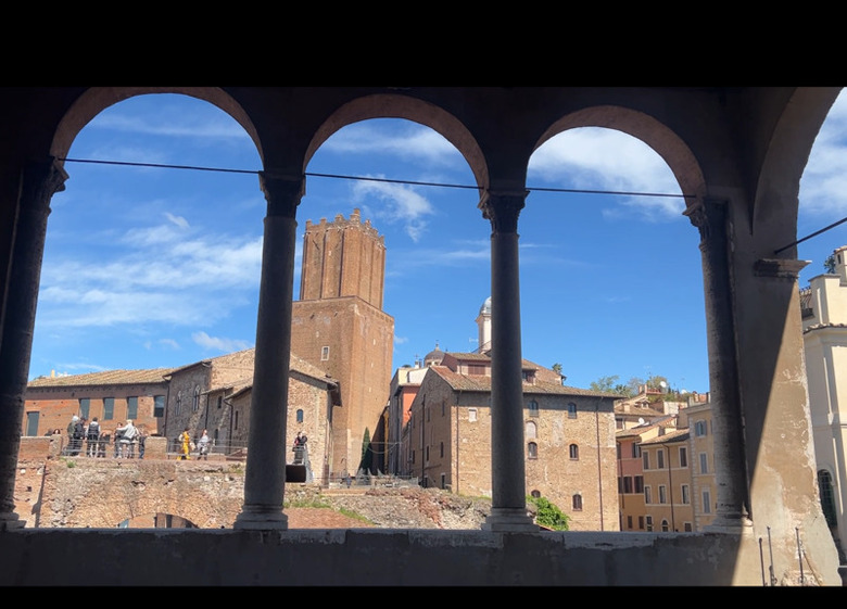 馬爾他騎士團義大利協會總部位在古羅馬遺跡奧古斯都廣場旁,具有俯瞰整片遺跡美景的涼廊。(中央社記者黃雅詩羅馬攝)