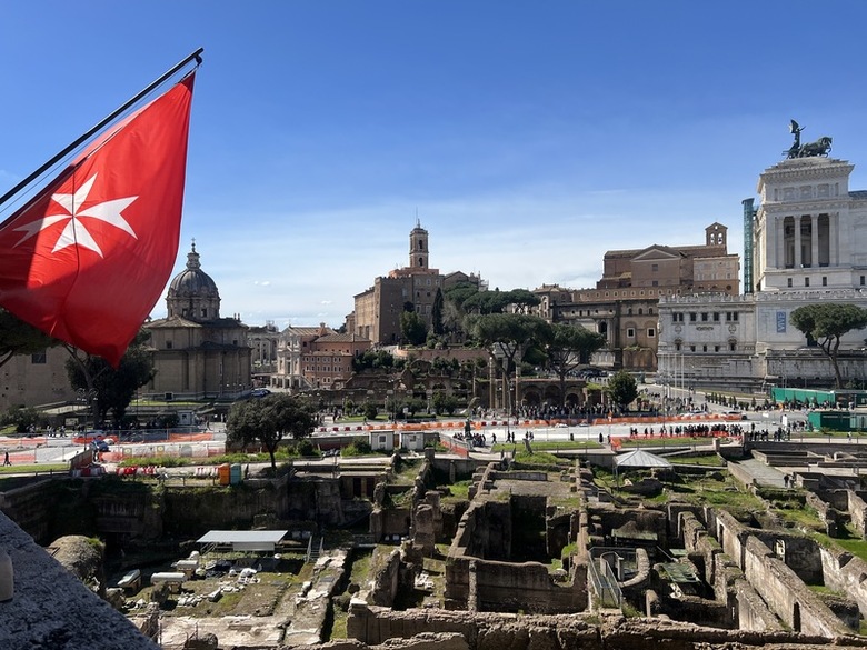 (中央社羅馬25日電)一面鑲著白色八角十字架的紅旗,飄揚在羅馬奧古斯都廣場上方。這棟絕美建築是全世界最獨特政權「馬爾他騎士團」的義大利協會總部,900年來以醫療人道援助為職志,活躍於超過120國,也是台灣長期合作的重要夥伴。