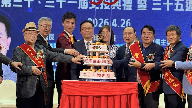 (台泰時報曼谷電)泰國拉加邦台商聯誼會於4月26日晚間舉行「第三十屆、第三十一屆會長交接典禮暨成立35週年慶」,來自台灣與泰國政商界、僑界及全球各地台商代表齊聚一堂,氣氛隆重熱絡,共同見證會務傳承的重要時刻。