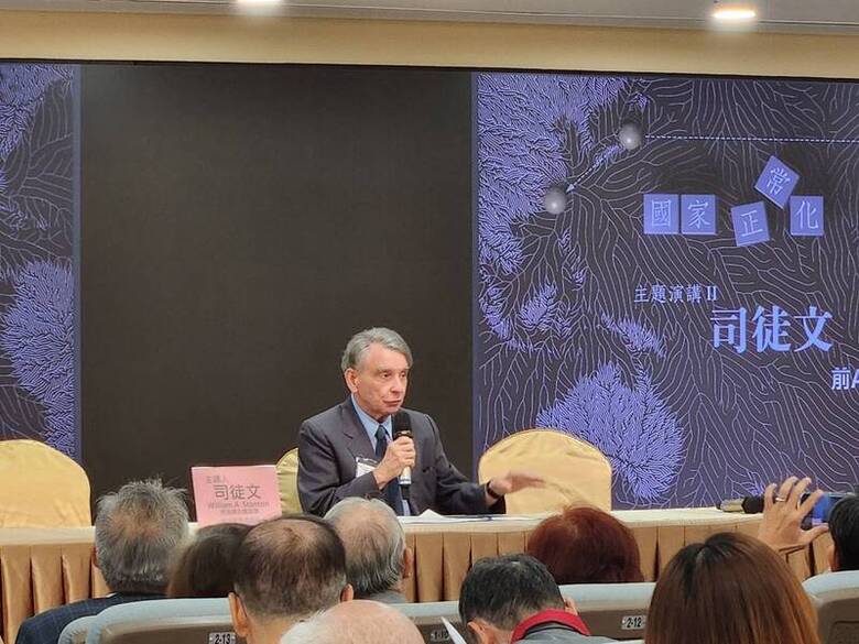 美國在台協會前處長司徒文26日出席第14屆海內外台灣國是會議專題演講。(中央社記者葉素萍攝)