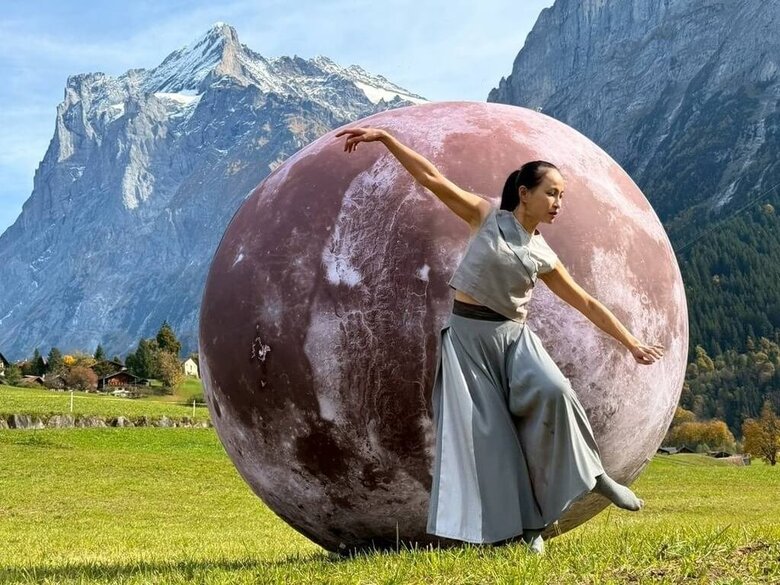 「月亮上的台灣」日前在瑞士巡迴演出,舞蹈家黃雅美的肢體語言顯出優雅與律動,感動觀眾。(蔡子琪提供,中央社記者郭芳君蘇黎世傳真)