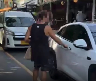 (台泰時報4月29日電)泰國普吉府近日一段影片在網路流傳,引發對旅客交通行為的討論。一名外國遊客被拍到將車輛停放於狹窄道路中央後離開,進入便利商店購物逾10分鐘,導致交通受阻並引發當地民眾關注。