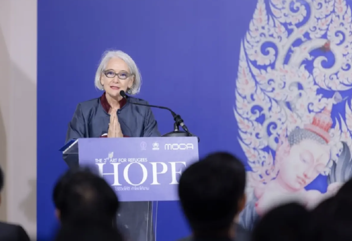 UNHCR駐泰國代表譚美·夏普(Tammy Sharpe)於開幕儀式表示,近十年間,全球被迫流離失所的人數持續攀升,已超過1億2,300萬人,其中兒童與青少年難民尤為脆弱。教育不僅能帶來安全與穩定,更是重建生活與融入社會的關鍵途徑。此次展覽正是以「希望」為主題,讓公眾透過藝術重新思考人道與共生的價值。