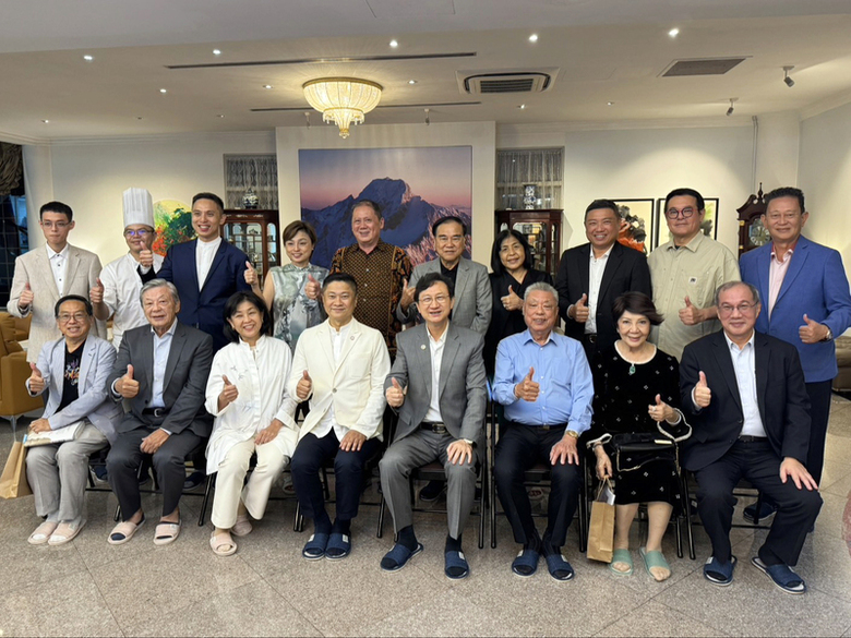 來自台灣、獲米其林認證的陽明春天蔬食餐飲集團到訪新加坡,駐新加坡代表童振源(前右4)14日晚間在官邸設宴,邀請產業界人士參與。(中央社記者吳昇鴻新加坡攝)