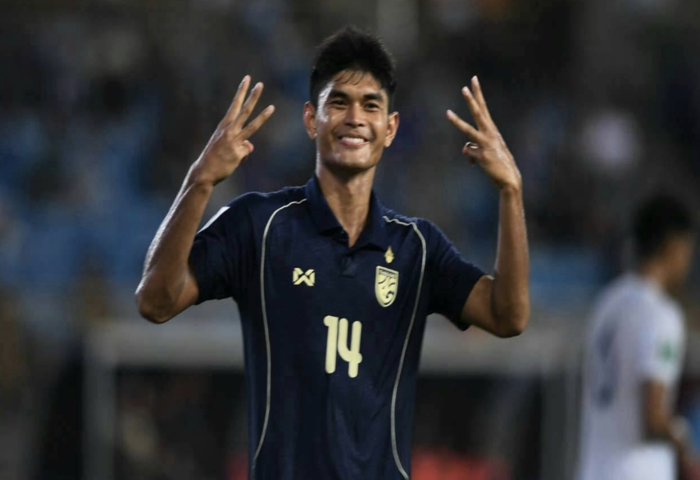 (台泰時報10月15日電)泰國國家足球隊於14日在亞足聯亞洲盃(AFC Asian Cup 2027)資格賽小組賽D組第四輪比賽中,以6比1大勝中華台北隊,取得關鍵三分,目前以9分積分暫居小組首位。