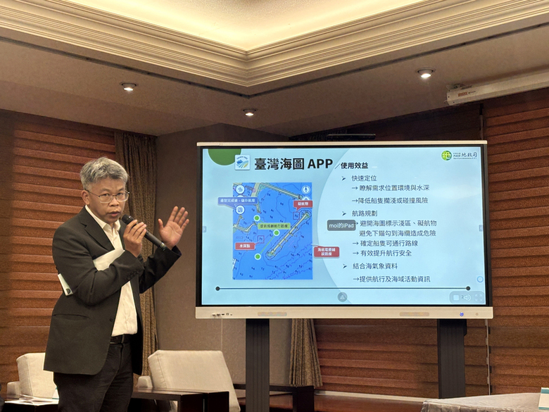 內政部地政司長林家正16日指出,「台灣海圖APP」預計11月1日上架,具備導航定位、港口及地標搜尋、海洋氣象查詢等功能,滿足小型船舶、遊艇及漁船需求,潛水人也可用於避免誤入漁船航道,免費試用半年再評估收費。(中央社記者高華謙攝)