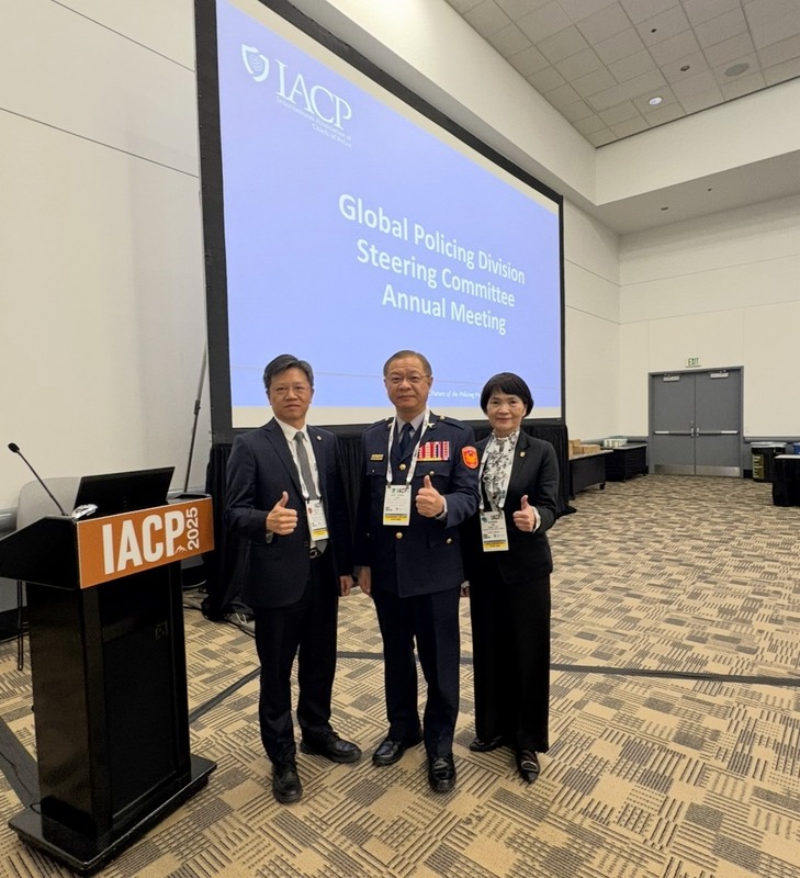 警政署副署長廖訓誠(中)、警政署國際組組長林妙齡(右)、刑事警察局國際刑警科科長李昆達(左)在國際警察首長協會(IACP)年會中強調台灣是國際打擊犯罪有力的夥伴。(警政署提供,中央社記者張欣瑜舊金山傳真)