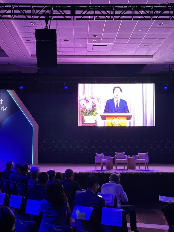 總統賴清德在紐約非政府組織年度峰會中,以錄影談話說明台灣在全球經濟與戰略地位的重要性。(中央社記者廖漢原紐約攝)