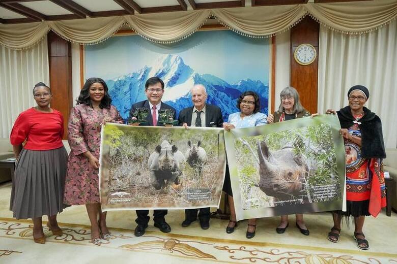 林佳龍提到,今年4月訪史期間,他曾在姆孔妲陪同下參訪Hlane王家國家公園並代表政府捐贈100萬史鍰用以建設犀牛新棲地圍籬,協助犀牛保育,並為新生小犀牛命名為福爾摩莎(Formosa),象徵台史在全球犀牛保育等議題並肩合作,欣見姆孔妲及王家自然保育顧問芮里(Terence Evezard Reilly,另譯:泰德雷利)夫婦年內應邀回訪,持續深化雙邊觀光及保育交流。