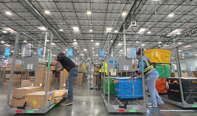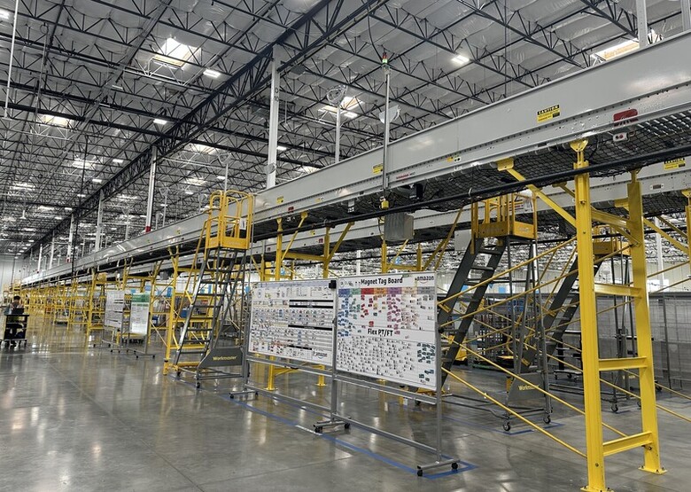 中央社與來自歐美、澳洲、日本、印度等約100名記者造訪亞馬遜特大型配送站。在亞馬遜旗下雲端服務AWS當機修復後,員工加快處理延誤包裹,現場瀰漫節日前的忙碌氣氛。