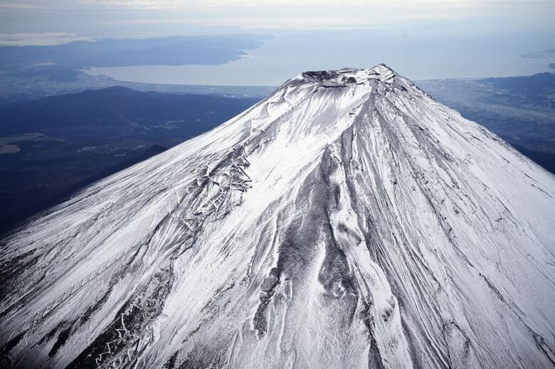 日本富士山山頂23日被白雪覆蓋。(共同社)