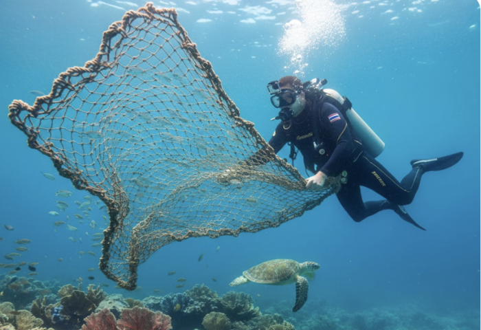 海洋資源廳廳長賓薩(Pinsak Suraswadi)指出,塑膠廢棄物問題已成全球關注焦點。泰國沿海地區每年約有數十萬噸塑膠流入海洋,其中相當部分來自城市排水系統及觀光區棄置垃圾。這些廢棄物不僅破壞景觀,還危害海洋生物,包括鯨魚、海龜、儒艮及海鳥等。部分動物誤食塑膠碎片致死,或被漁網纏繞受傷。