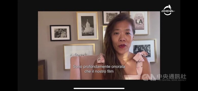 「左撇子女孩」台灣導演鄒時擎以錄影方式在羅馬影展致詞,感謝獲得最佳影片殊榮。(圖為官網直播典禮截圖,中央社記者黃雅詩羅馬傳真)