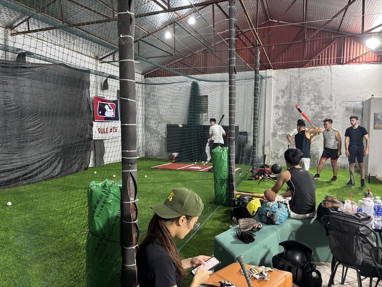 河內缺乏棒球練習場,球隊過去僅有的狹小練習草地被改建成餐廳,旅越台人張岳豐自掏腰包,成立河內第一個棒球室內訓練基地Perfect Game棒球中心,免費讓隊友練習。(中央社記者曾婷瑄河內攝)