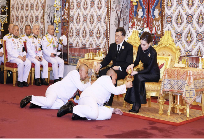 儀式期間,皇儲提幫功王子(Prince Dipangkorn Rasmijoti)及貴妃詩妮娜(Sineenat Bilaskalayani)陪同出席。烏汶叻公主(Princess Ubolratana)、詩麗婉娜哇麗公主(Princess Sirivannavari Nariratana)與普萊潘·詹森(Ploypailin Jensen)亦於殿前恭迎駕臨。
