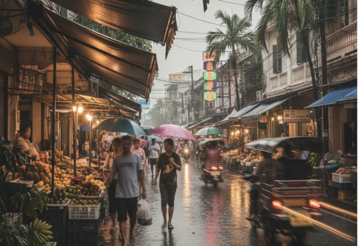 (台泰時報10月29日電)泰國氣象局29日發布最新天氣預報指出,受低氣壓與東北季風交互影響,全國多地天氣轉變,北部與東北地區清晨氣溫下降,天氣涼爽;中部與東部雲量增加,局部地區有短暫陣雨;南部則出現明顯降雨增多現象,部分地區可能出現強降雨,並伴隨2公尺以上高浪,提醒民眾與漁船加強防範。
