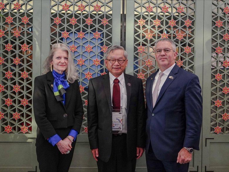 另場雙邊會談,則是吳誠文會晤美國國務院經濟成長、能源暨環境事務次卿海爾伯格(Jacob Helberg)。吳誠文除了向海爾伯格就其履新表達祝賀,並強調台灣期待在創新產業、供應鏈安全及強化全球人工智慧領導地位等領域,與美方拓展更多合作機會。