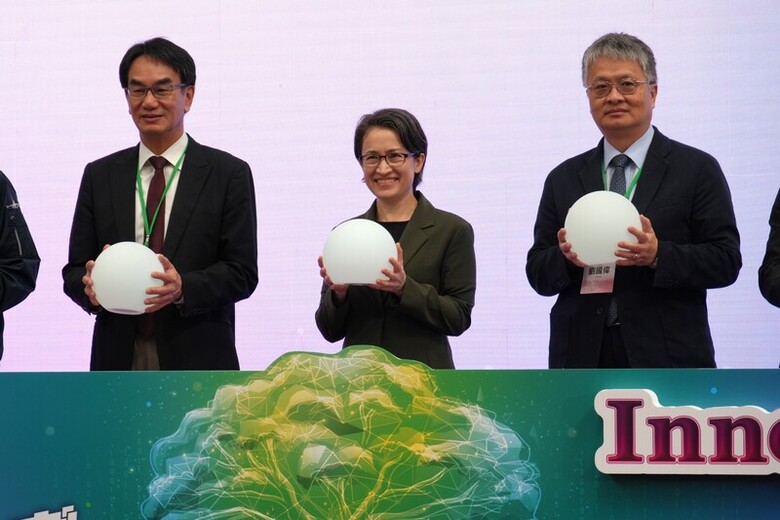 副總統蕭美琴(中)1日出席第30屆大專校院資訊應用服務創新競賽,勉勵參賽學生,有些創意能夠商業化、能賺錢,但有些則難免遇到顛簸,但這就是創新的本質。(中央社記者陳至中台北攝)