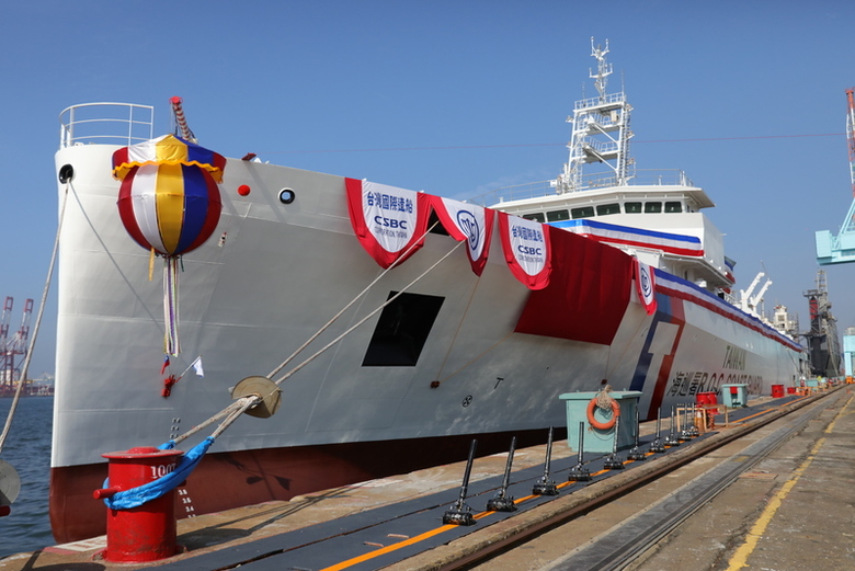 海洋委員會海巡署「籌建海巡遠洋巡護船發展計畫」,規劃民國113年至120年間,新建6艘高緯度遠洋巡護船,總經費約新台幣117億元,由台灣國際造船股份有限公司承接建造案,1日舉辦第1艘命名下水典禮,提升海上執法能量。(中央社記者張已亷攝)