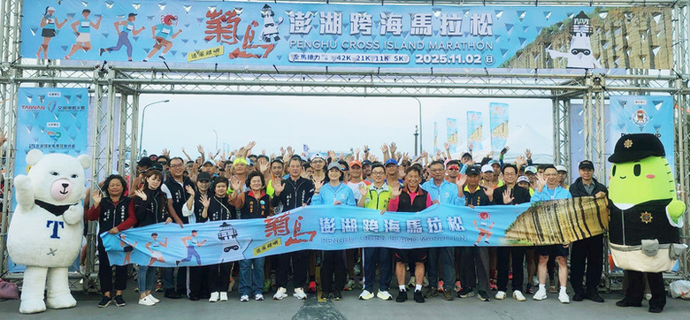 全台唯一「跨海+跳島」的「2025菊島澎湖跨海馬拉松」活動,來自國內外3400多名男女選手參加,今天清晨6時30分由觀光署長陳玉秀、澎湖縣政府參議林長安、無黨籍議員許月里、澎管處長郭振陵等人共同鳴笛,分別從西嶼遊客中心與馬公觀音亭兩地開跑,場面壯觀。