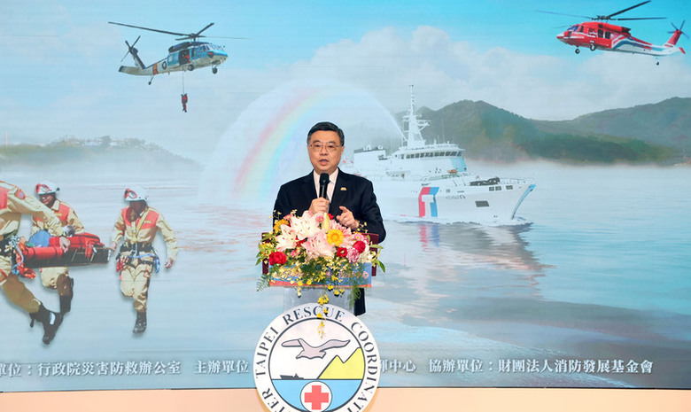 卓榮泰致詞表示,首先要對第一線守護人民生命安全的所有搜救人員致謝,今年7至9月接連颱風、豪雨和堰塞湖潰堤,政府和人民一定力挺消防、搜救人員,且是最強後盾。