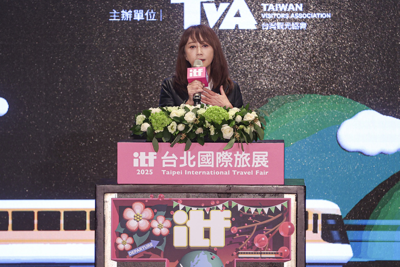2025台北國際旅展(ITF)即將登場,台灣觀光協會會長簡余晏(圖)4日出席展前記者會,致詞歡迎大家到場逛展。(中央社記者鄭清元攝)