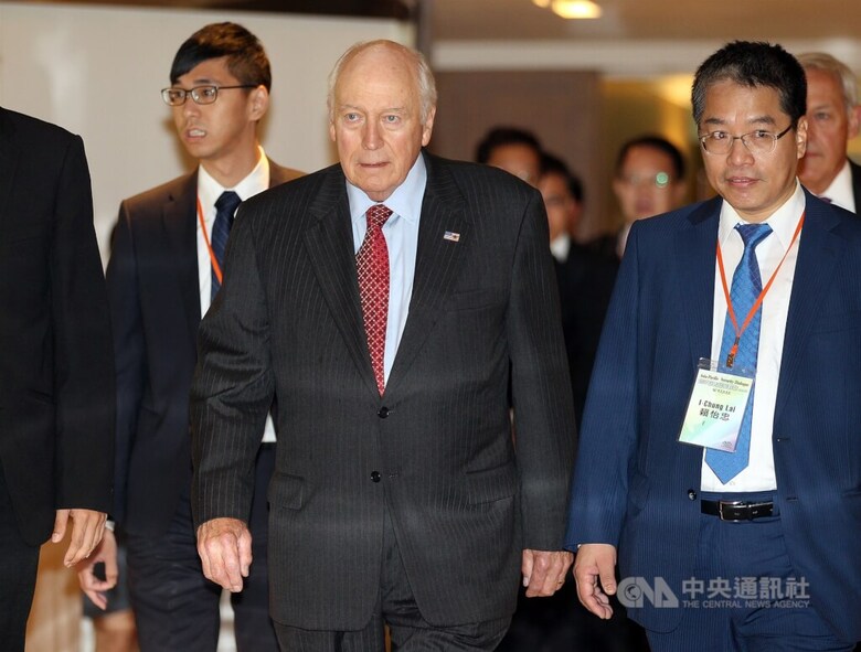 前美國副總統錢尼(前左2)2017年來台參加凱達格蘭論壇並發表演說。(中央社檔案照片)