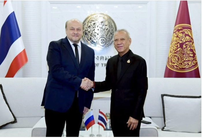 (台泰時報11月6日電)泰國副總理兼交通部長披帕(Phiphat Ratchakitprakarn)5日會晤俄羅斯駐泰大使湯米金(Evgeny Tomikhin),雙方討論強化交通運輸領域合作,包括推動泰俄直航航線復航,以促進觀光與經濟發展,並就鐵路技術與維修系統交換意見,盼為兩國關係開創新契機。